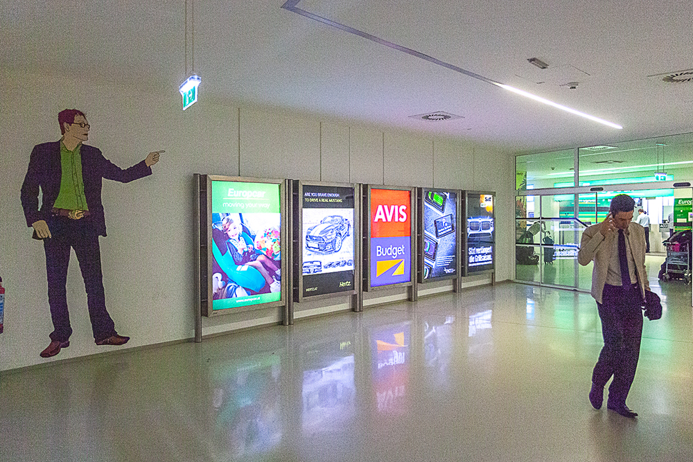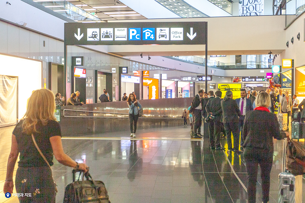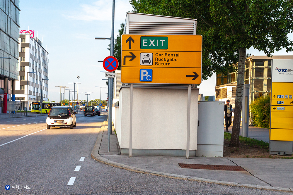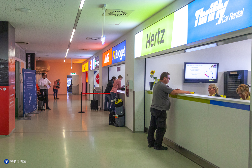 빈 공항은 구조가 복잡하지 않아서 안내판만 계속 따라가면 된다. 차 위에 열쇠가 있는 그림이 렌터카 표시다.
